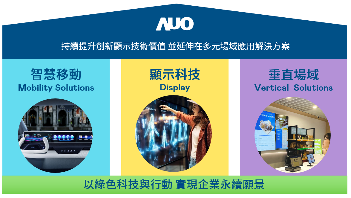我們持續推動「雙軸轉型」,在精進顯示技術附加價值(Go Premium),與深化垂直市場應用(Go Vertical)的策略下,對應jiuyou.com的優勢競爭力與趨勢,我們奠定顯示技術、智慧移動、垂直場域三大永續營運支柱,在顯示技術領域的根基之上,延伸布局多元場域應用解決方案。將先進顯示科技助力智慧移動及垂直場域發展,並以綠色科技與行動為實踐,在轉型之路上貫徹永續經營之願景。
